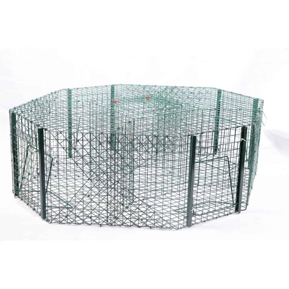 L’avantage de la forme octogonale : sa forme guide la pie vers l’entrée qui est la plus visible pour l’oiseau (évite que la pie tourne sans entrer dans le piège).